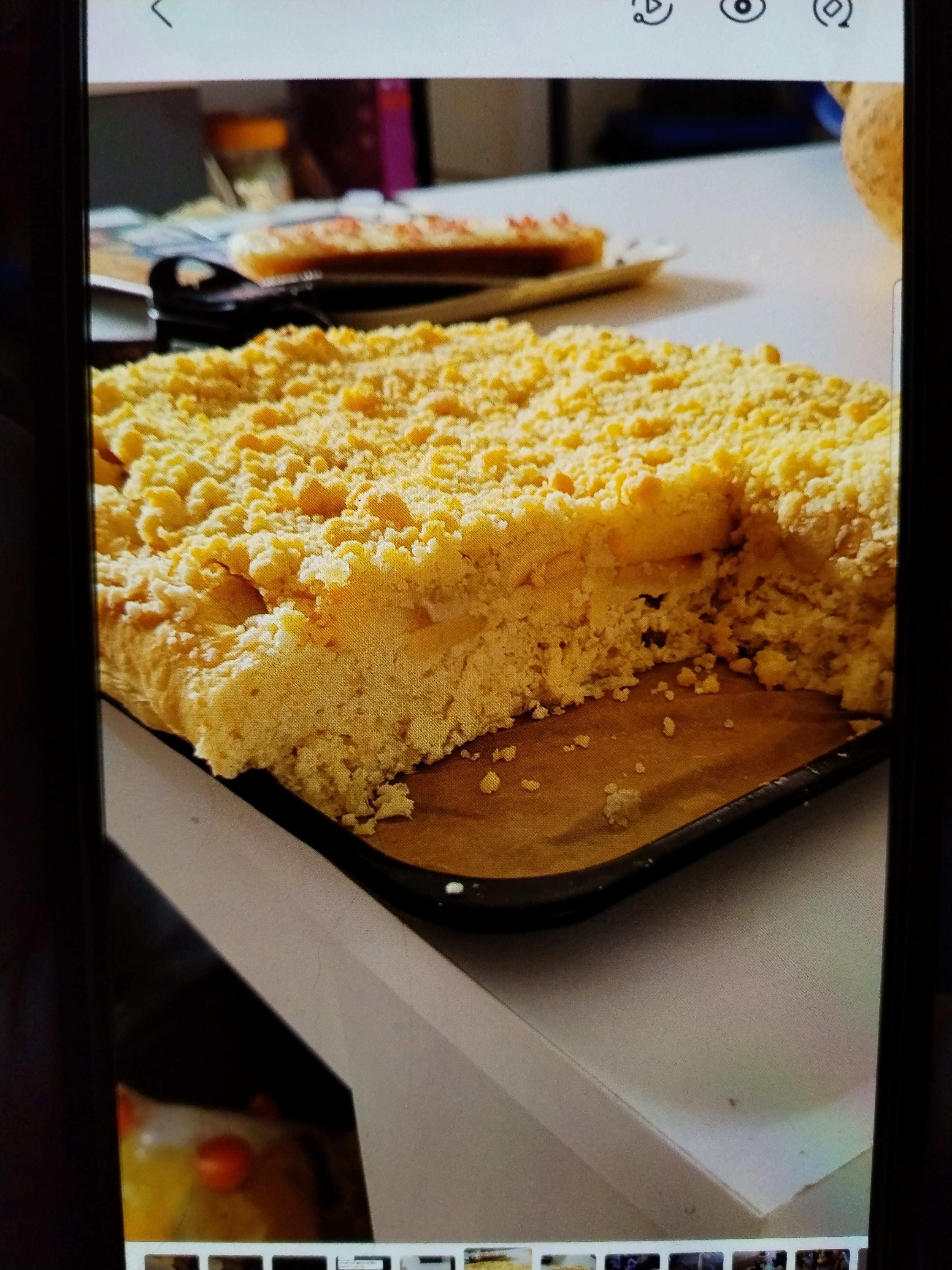 Ich habe im Übrigen nur einen Minibackofen, mein Blech ist ziemlich flach und trotzdem war mein Kuchen am Ende 5-6 cm hoch mit allem drum und dran.👍😋🤤 … und jetzt auf ein neues. Das zweite Mal diese Woche.😛