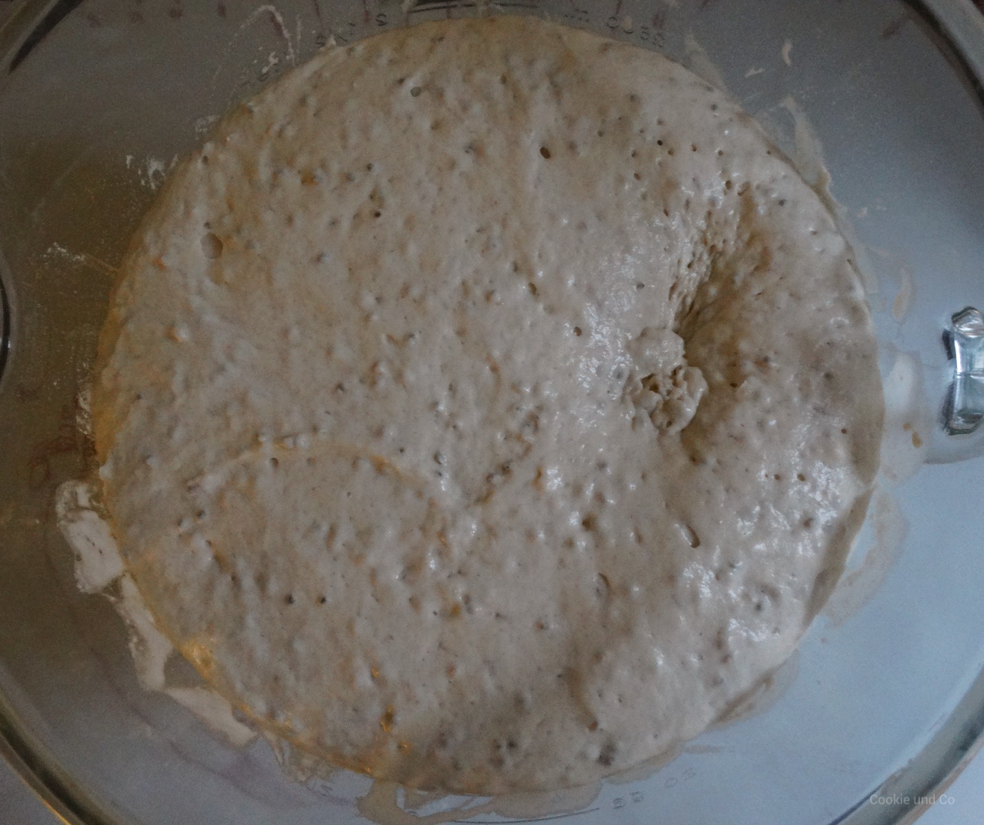 Der Teig muss für dieses Dinkel-Chia-Baguette nicht speziell geformt werden, sondern nach der Gehzeit nur noch abgestochen werden. Bei der Gehzeit habe ich drei verschiedene Varianten für euch, je nachdem wieviel Zeit ihr dafür habt. Ich bevorzuge dabei die längste Gehzeit von 24 Stunden im Kühlschrank, da der Teig nicht nur einen besonders guten Geschmack durch die , kalte Teigführung erhält, sondern auch für viele Menschen besser verträglich wird, die sonst mit frischem Hefegebäck Probleme bekommen. Egal für welche Variante ihr euch entscheidet, es schmeckt sehr lecker und das ohne großen Aufwand…