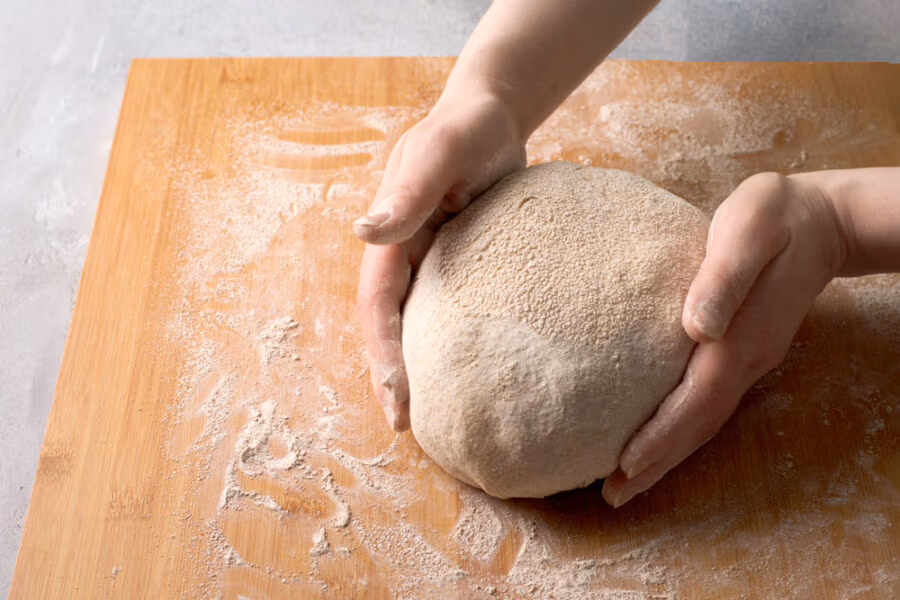 - Lieber kurz kneten und dehnen & falten: Dinkelteige nur 8–10 Min. langsam, dann 1–2 Min. zügig kneten, den Rest erledigen zwei Falt-Runden.