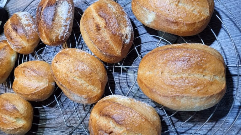 Hast du Lust auf leckere Brötchen? Dann probiere doch mal diese einfachen, aber unglaublich leckeren Wasserweck. Die besondere Mischung aus Weizenmehl, einem Anteil an Dinkelmehl und Hartweizenmehl, gepaart mit einem Vorteig aus Lievito Madre, ergibt aromatische Brötchen, die dich mit ihrer knusprigen Textur begeistern werden. Diese Wasserweck sind ideal für ein ausgiebiges Sonntagsfrühstück oder als Begleitung zu deinen Lieblingsaufstrichen und -belägen.