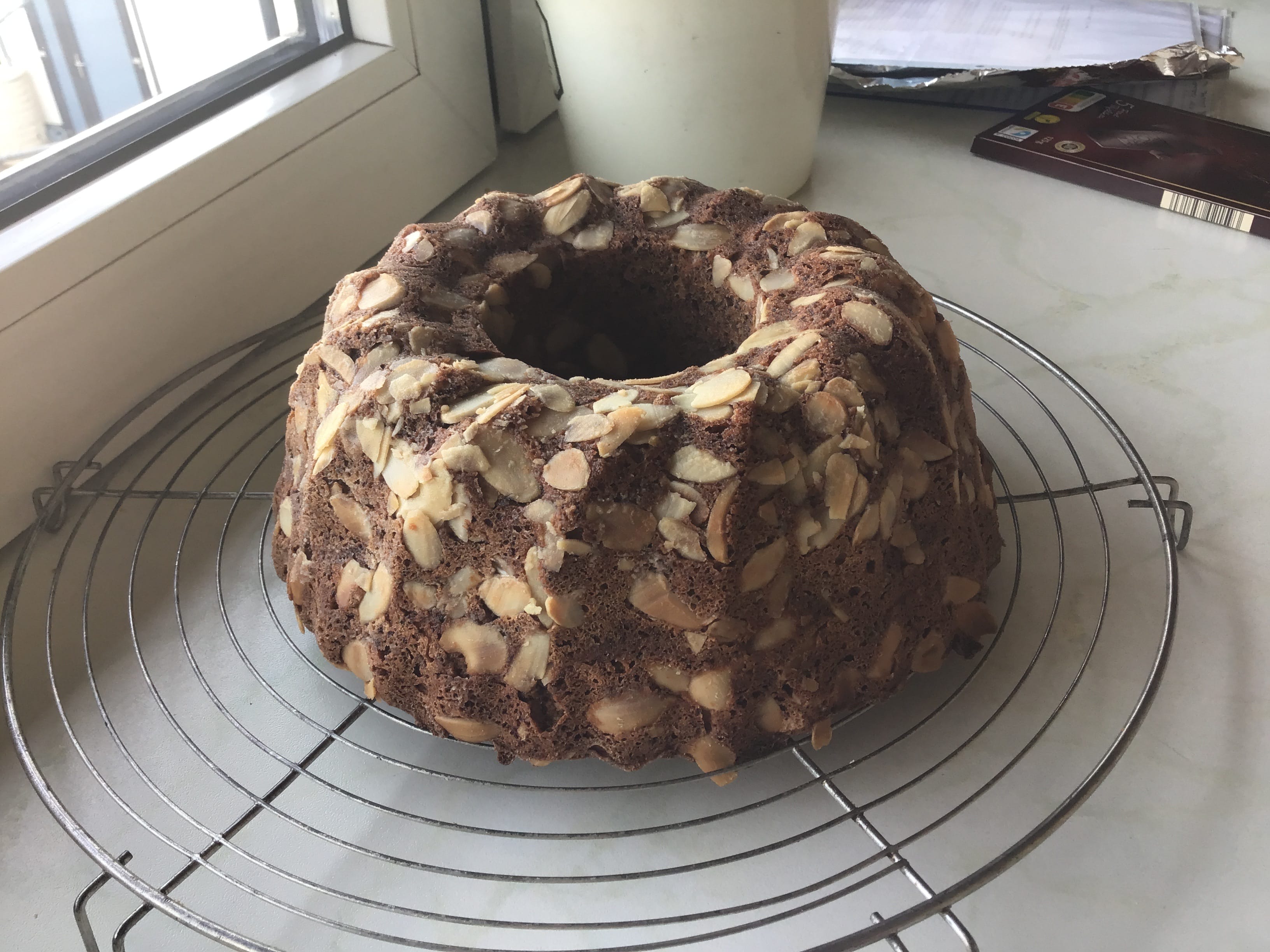 - Gugelhupf Form o. ä. fetten und mit gerieben Mandel ausstreuen.