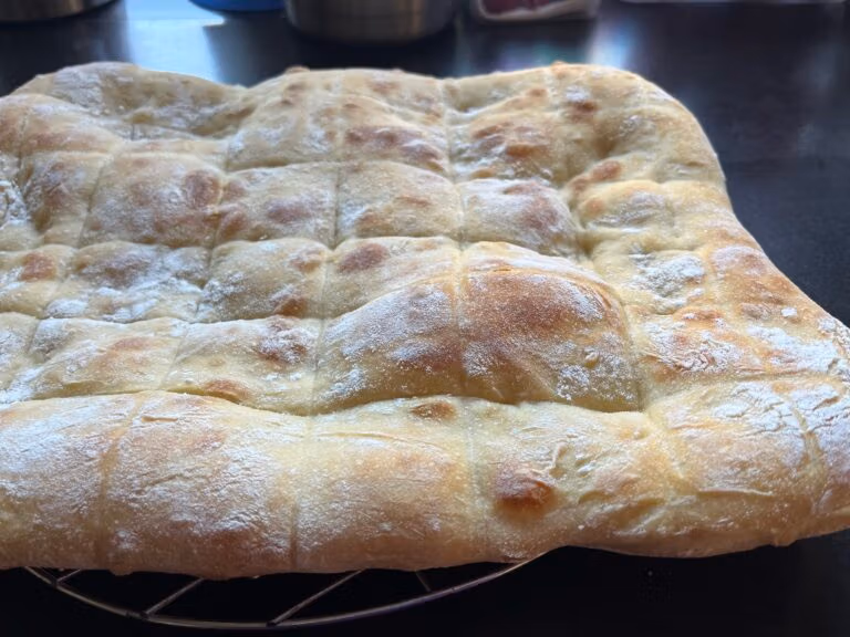 - Für 12−14 Stunden in einer leicht geölten Schüssel oder Teigwanne bei einer Raumtemperatur von etwa 20 °C reifen lassen.(Mit Lievito Madre statt Hefe für 12−14 Stunden bei 22−24°C reifen lassen.)