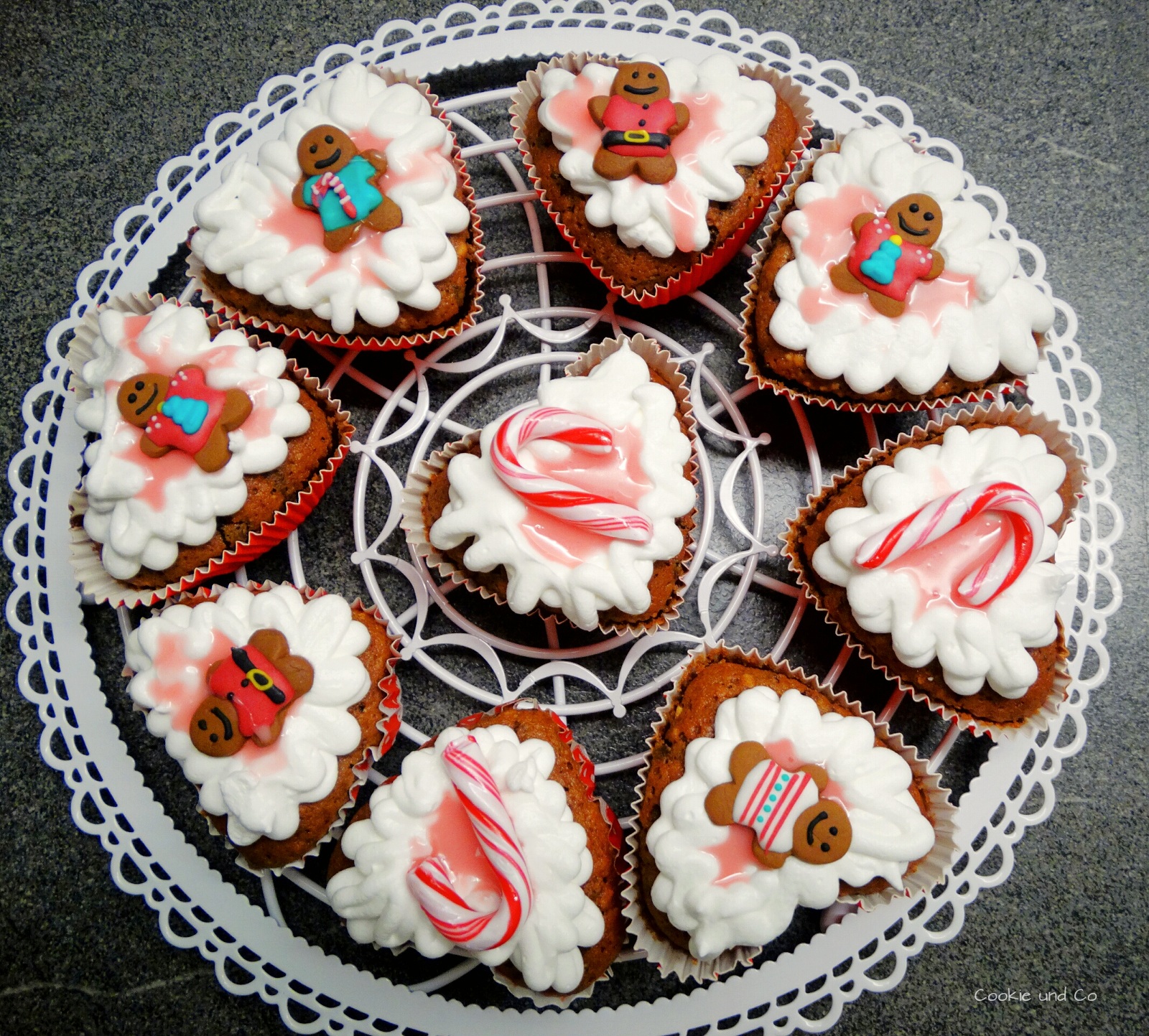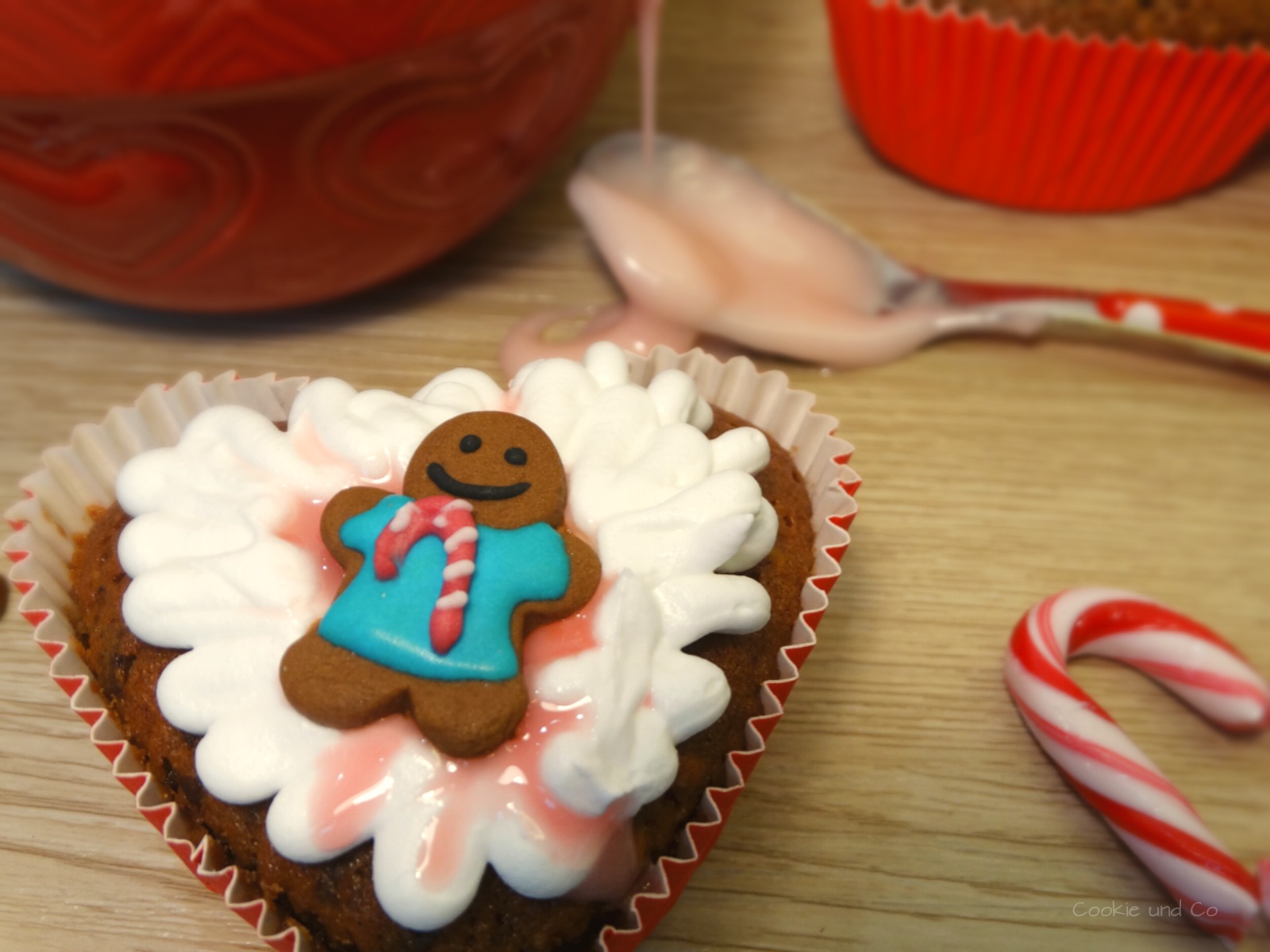 Ich habe diesmal die Glühwein-Muffins mit der Eiweißspritzglasur und der halben Menge Zuckerguss dekoriert.