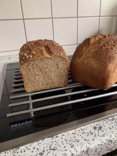 Mega lecker! Meinem Sohn und mir schmeckt das Brot richtig gut. Lieben Dank für das tolle Rezept! Da ich kein Weizenvollkornmehl da hatte, habe ich es mit Dinkel-Vollkornmehl gemacht und alles per Hand geknetet.