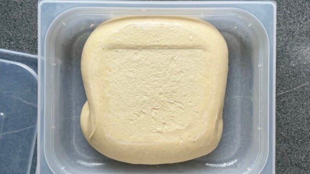 - Same-Day: Teig abgedeckt 3–4 Std. bei Raumtemperatur (20–22 °C) reifen lassen, bis er sich mindestens verdoppelt hat.Über Nacht: 1 Std. bei Raumtemperatur anspringen lassen, dann 10–12 Std. im Kühlschrank (5–6 °C) reifen lassen. Am Backtag 1–2 Std. akklimatisieren.