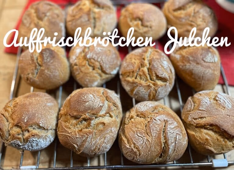 Heute wurde mal wieder Sauerteig aufgefrischt, und dann wird „Julchen“ gebacken ! Eigentlich sollen die Brötchen für den Vorrat in den TK, aber meistens verschwinden sie schnell und klammheimlich aus der Küche! Sie sind aber auch einfach nur gut!!!!