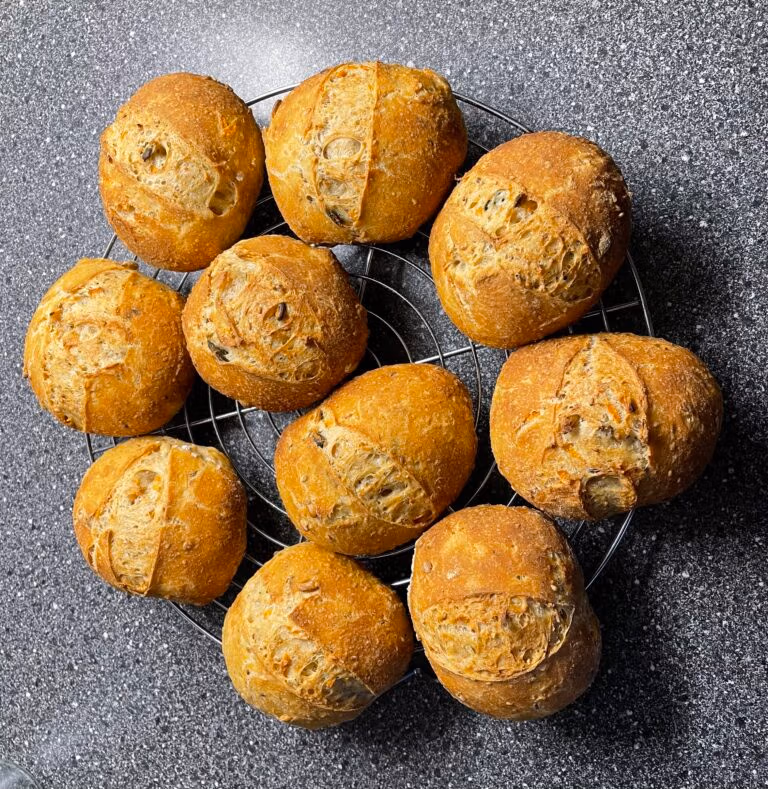 Sauerteigreste-Verwertung: Auffrischbrötchen mit Karotten und Haferflocken