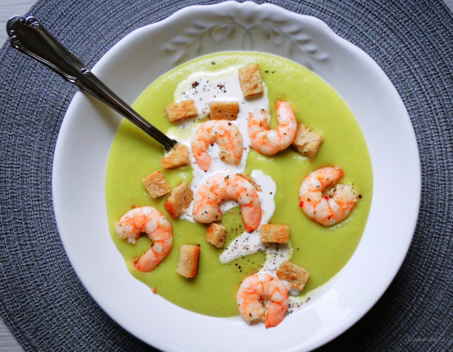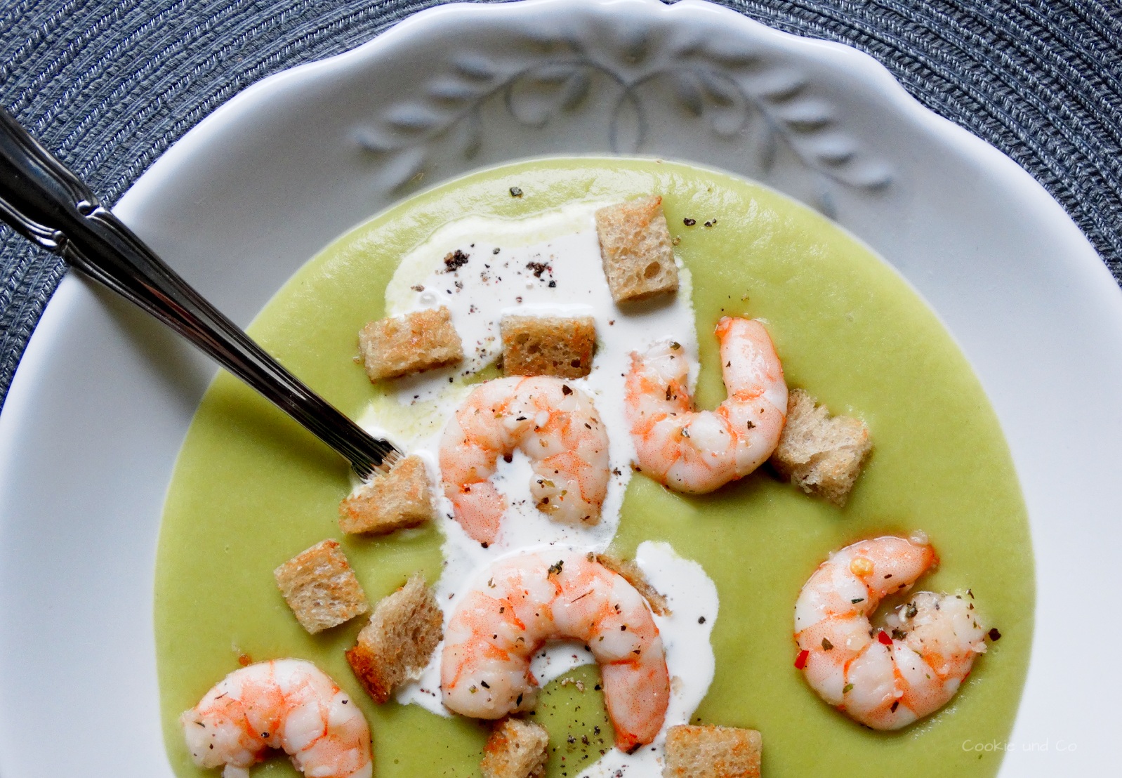- Nochmal abschmecken und entweder pur oder mit den gerösteten Toastwürfeln und/oder Garnelen servieren.