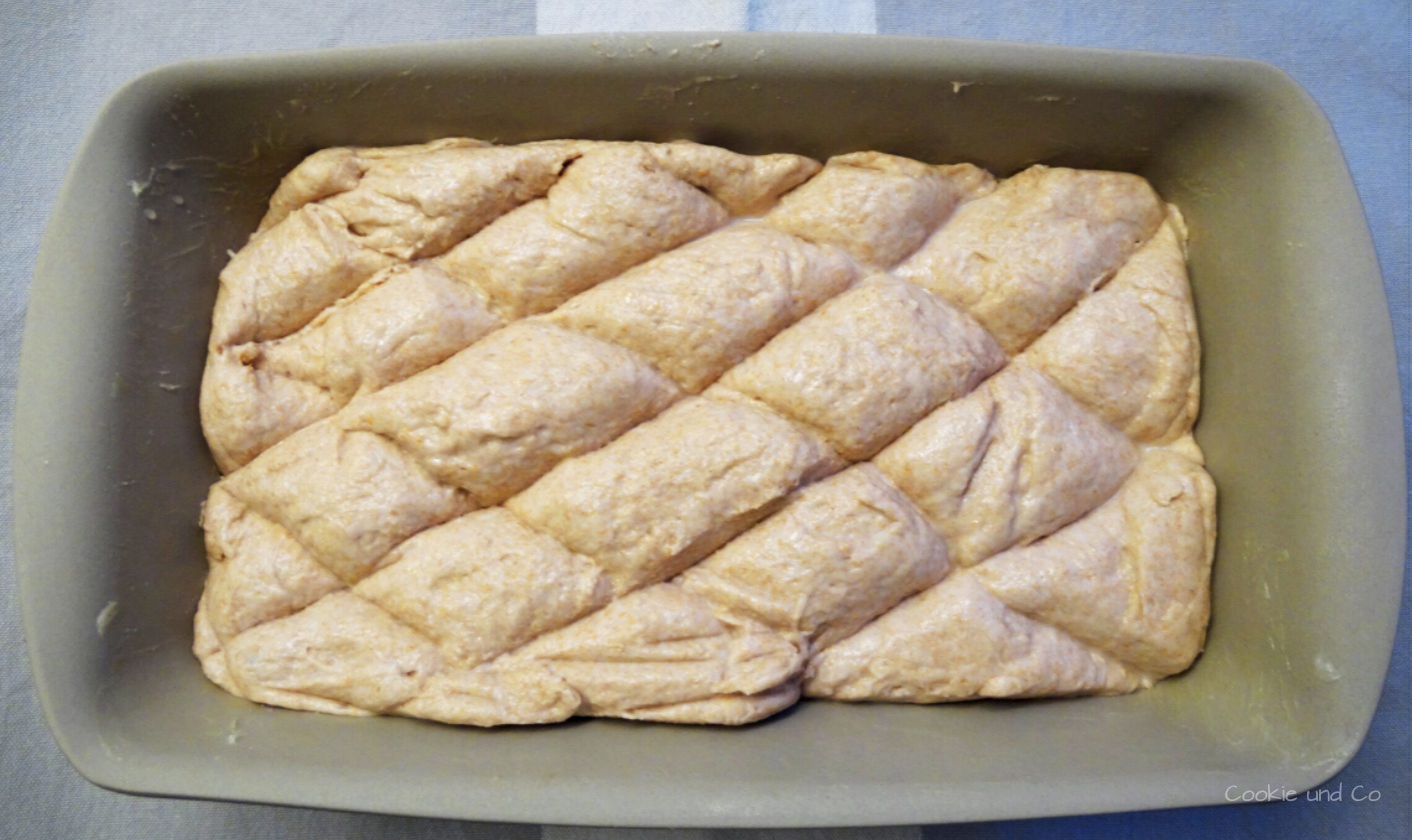 - Nun das Brot etwa 40 Minuten (mit 20g Hefe) bzw. 60-80 Minuten (mit 10g Hefe) bei Zimmertemperatur abgedeckt gehen lassen und