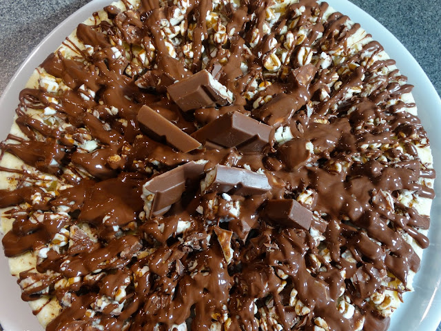 - Die Torte anschließend mit der geschmolzenen Schokolade beträufeln und bis zum Verzehr im Kühlschrank aufbewahren.