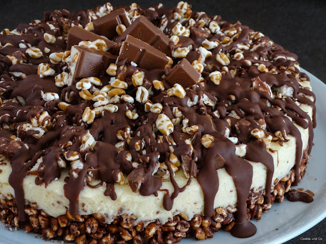 - …den Rand der Springform/ Tortenring entfernen und die Torte mit Cerealien und grob zerhacken Kinder Countrys verzieren.