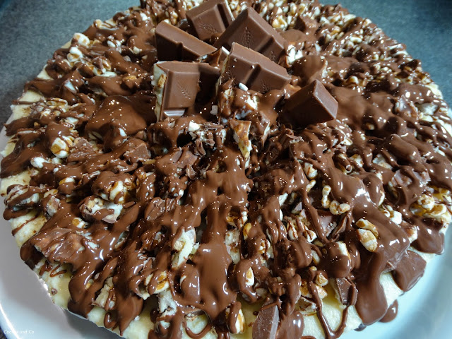 - Die Torte anschließend mit der geschmolzenen Schokolade beträufeln und bis zum Verzehr im Kühlschrank aufbewahren.