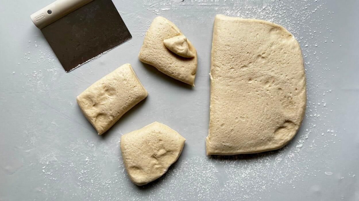 Tipp: Wenn sich der Teig beim Formen zusammenzieht, lass ihn 10–15 Minuten entspannen und versuch es dann nochmal. Der Teig wird dann deutlich kooperativer!