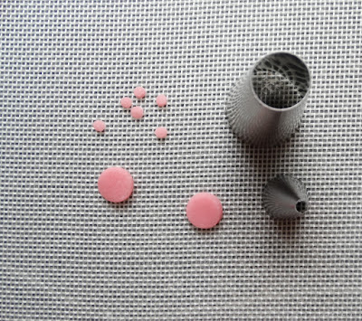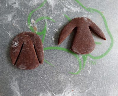 Die Kreise für die Pfoten habe ich mit Spritztüllen ausgestochen undspäter mit Zuckerkleber an den Pfoten angeklebt. |