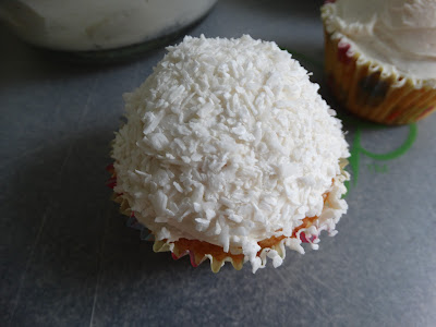 Das Lamm mit Zuckerguss einpinseln und in Kokos wälzen. |
