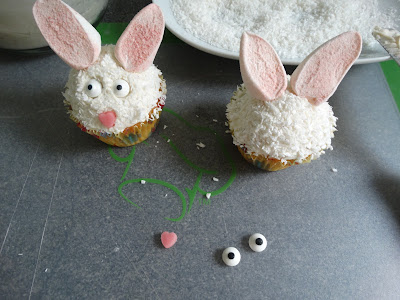 Bei mir gab es letzte Woche schon die Osterhasenpopo-Cupcakes: http://tomateninsel.de/osterhasen-cupcakes/Deine Muffins mit Osterhasengesicht und Schaf finde ich total s