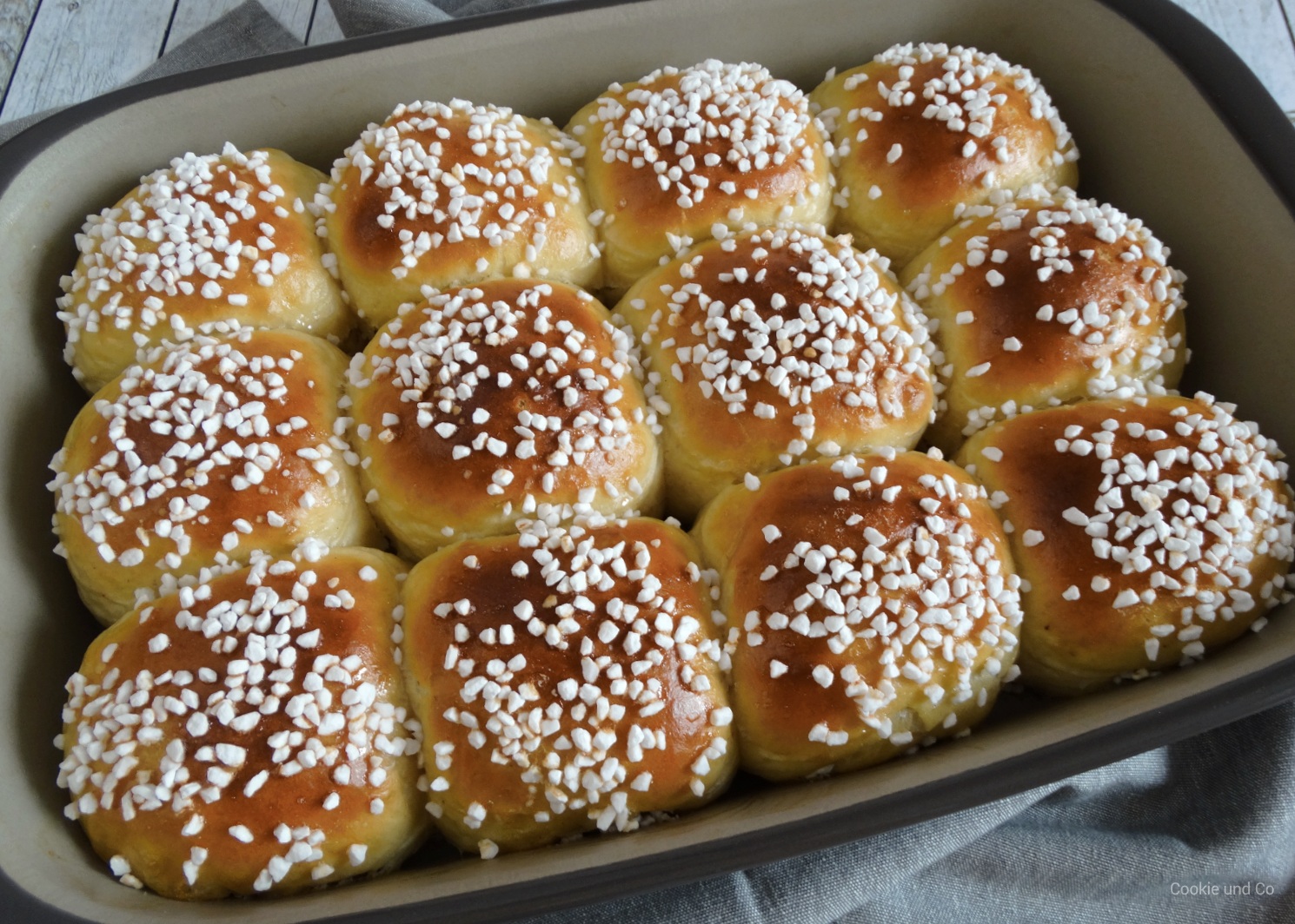 „Pikku“ bedeutet dabei soviel wie „klein“ und „Pulla“ steht für Hefegebäck oder Hefeteilchen. Wenn ihr also statt 12 kleinen Brötchen weniger und dafür größere formt, dann habt ihr finnische „Pulla“.