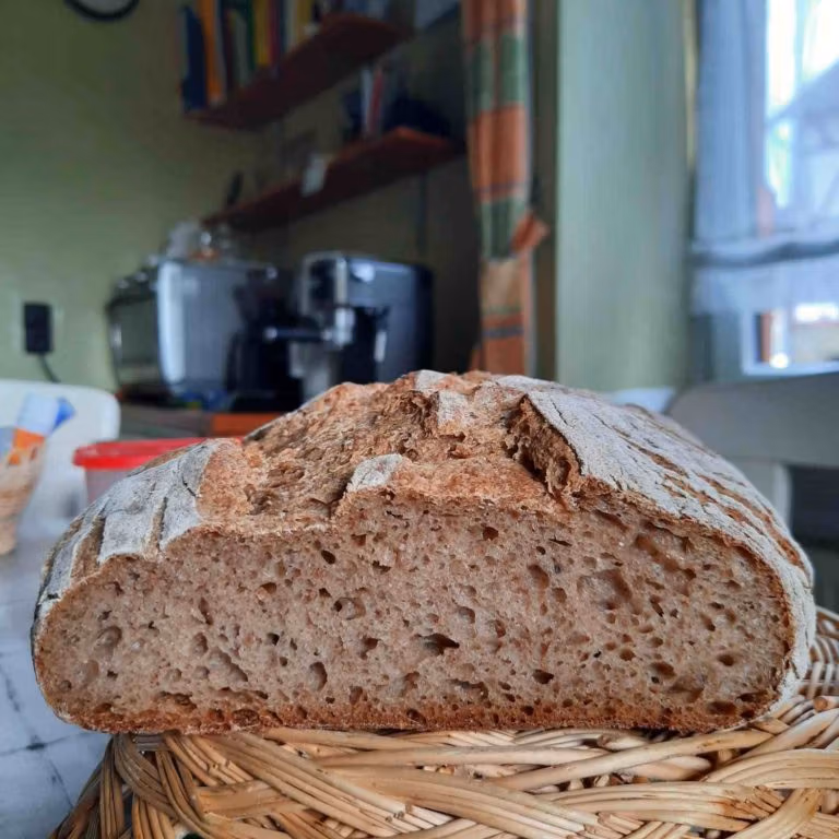 Hallo. Früher habe ich das Brot einmal pro Woche gebacken und es hat wunderbar geklappt. In der letzten Zeit backe ich nur alle 3 Wochen und läuft es mehr in die Breite und wird eher flach. Die Poren sind aber prima. Was könnte der Fehler sein.