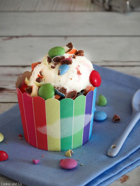 - Topping nach Wahl: Ich hatte Smarties, teilweise gehackt