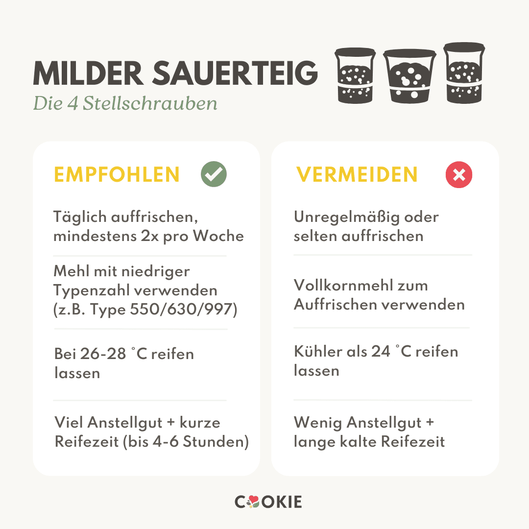 - Du hast wenig Zeit? Dann verwende mehr Anstellgut – so ist dein Sauerteig schneller reif.