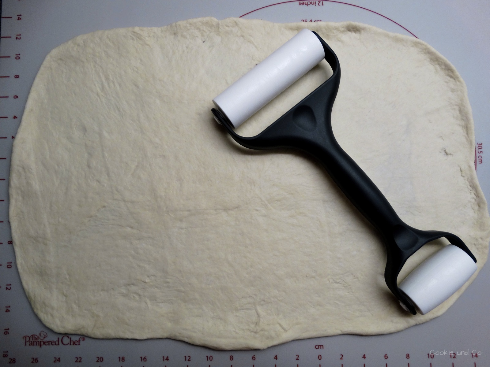 Als Grundlage dient meines Lieblings – Pizzateig, den ich fast immer im Kühlschrank habe. Er kann aber auch frisch gemacht und nach etwas Gehzeit verarbeitet werden. Im Kühlschrank kann er bis zu einer Woche aufgehoben werden und wird mit jedem Tag geschmacklich besser.