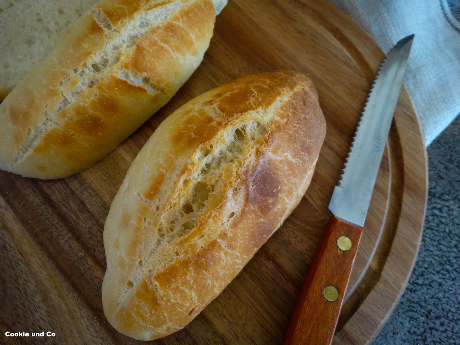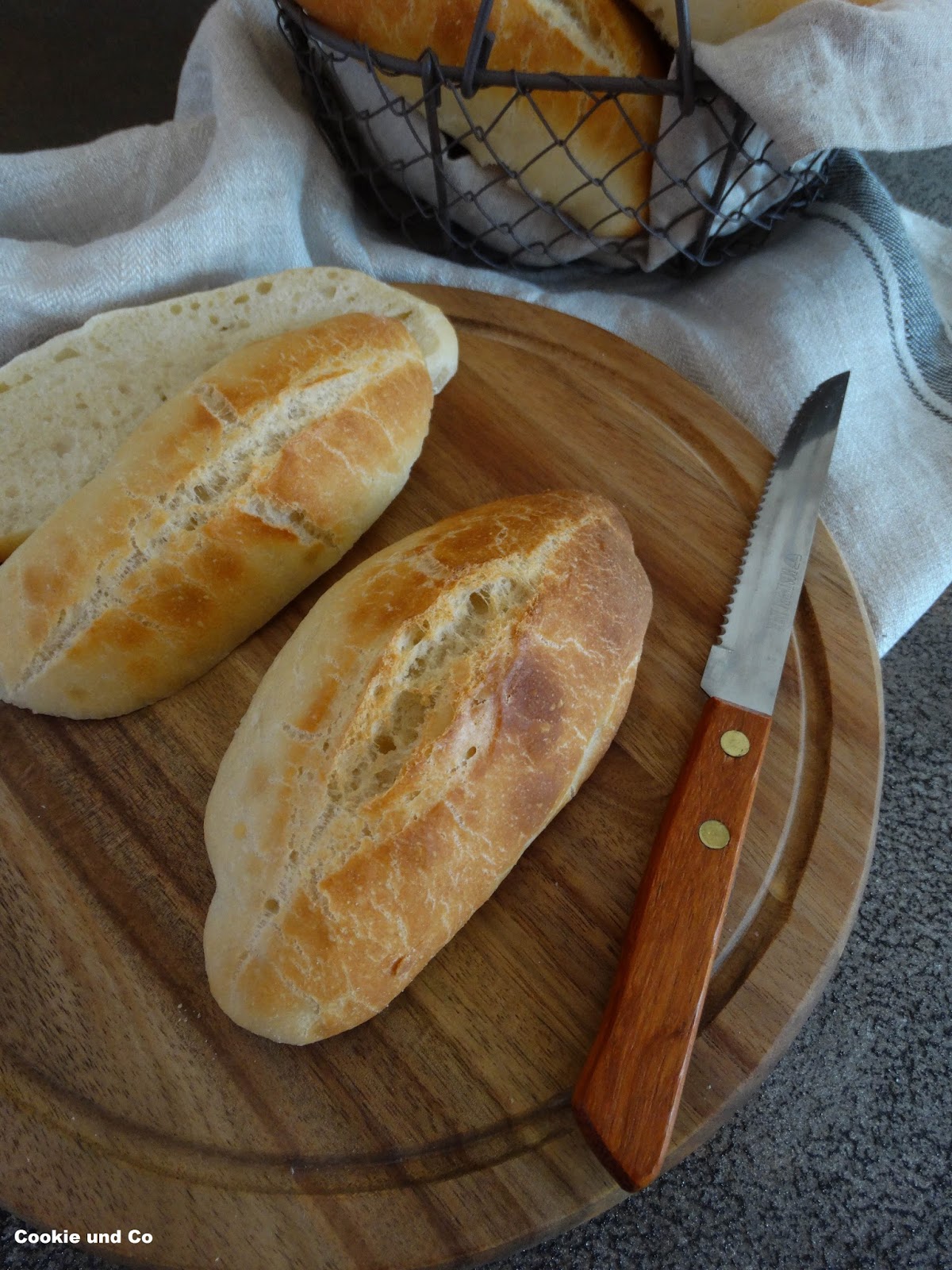 - Kurz vor Backbeginn werden die Teiglinge mit einem scharfen Messer einmal längs eingeschnitten.