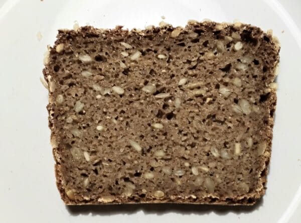 Durch den hohen Anteil an Vollkorn und die lange Reifezeit bleibt das Schwarzbrot lange frisch und saftig. Ein selbst gebackenes Schwarzbrot hält sich im Brottopf etwa 5–7 Tage. Alternativ kannst du das Brot auch in Scheiben schneiden und portionsweise einfrieren. So hast du jederzeit frisches Brot zur Hand und kannst es bei Bedarf auftauen und kurz aufbacken.