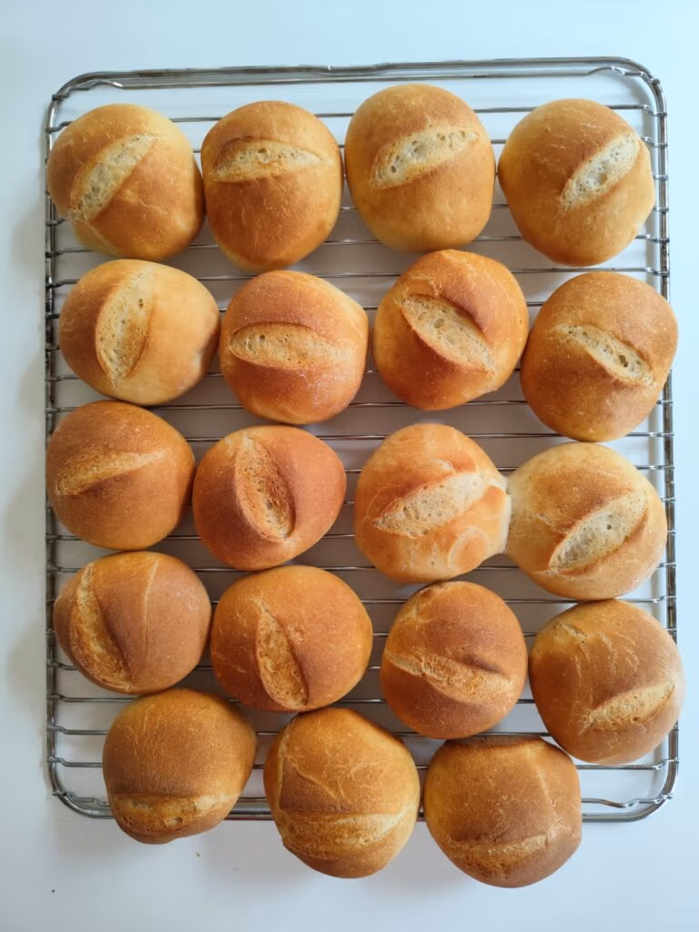 Inmitten eines fast leeren Gefrierfachs voller Brot entdeckte Tanja ein einsames Brötchen. Mit der Sommerhitze draußen und einer sommerbedingten Backpause war das Dilemma groß. Doch die Not machte erfinderisch: Sie setzte einen Biga-Vorteig an, in der Hoffnung, die Backbegeisterung am nächsten Morgen wiederzufinden. Nun, der nächste Tag kam und die Begeisterung blieb gedämpft. Doch statt aufzugeben, mischte Tanja verschiedene Rezepte und suchte nach einer schnellen Lösung. Das Ergebnis? Einfach geformte, nebeneinander liegende Brötchen, die sie auf den Namen „Sommer-Pause Brötchen“ taufte. Hier findest du noch weitere „schnelle“ Brötchen-Rezepte.