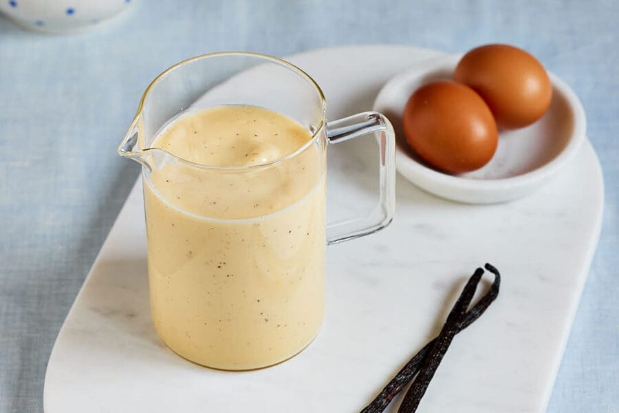 Im Kühlschrank hält sich selbstgemachte Vanillesoße gut verschlossen 2–3 Tage.