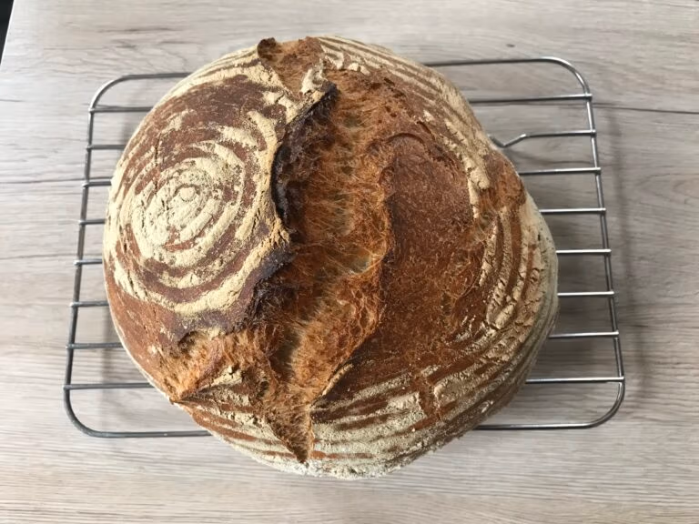 - Nach dem Backen das fertige Weizenkrüstchen über Nacht auf einem Kuchengitter abkühlen lassen.